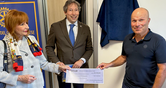 Nerll’immagine, da sinistra: Dott.ssa Mara Tonegutti del Comitato Direttivo del RC Peschiera; Michele Montresor, Presidente del RC Peschiera; Luca Tartarotti, Presidente de La Nostra Casa ODV.”